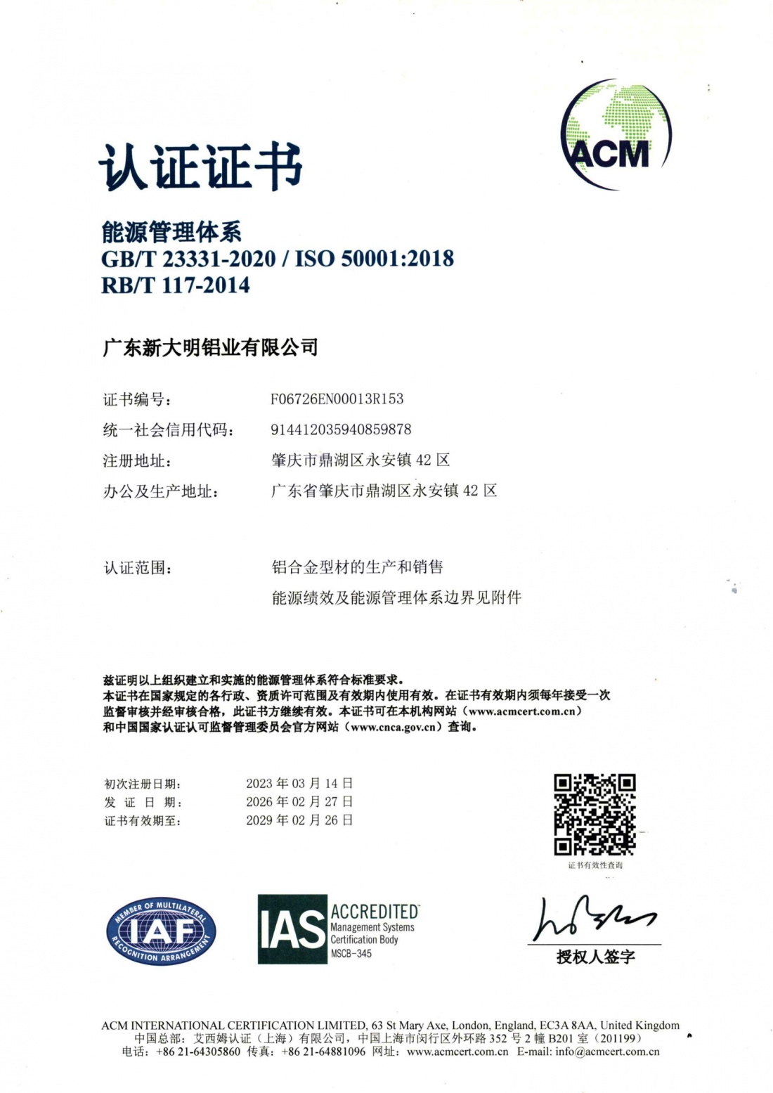 能源管理体系认证证书
